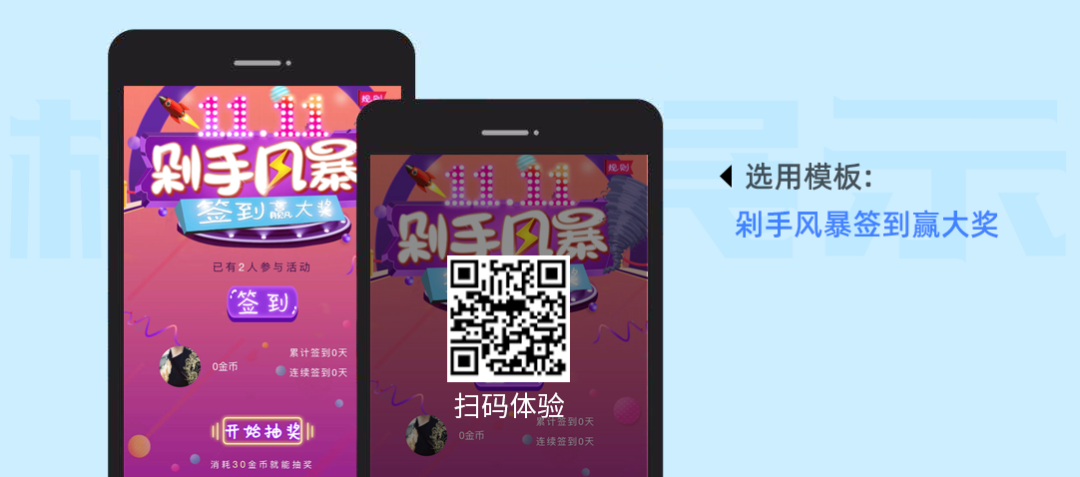 Step4:选择相关的行业及心仪的创意活动模板,点击“体验”感受活动场景,确认后点击“我要创建”进行活动设置