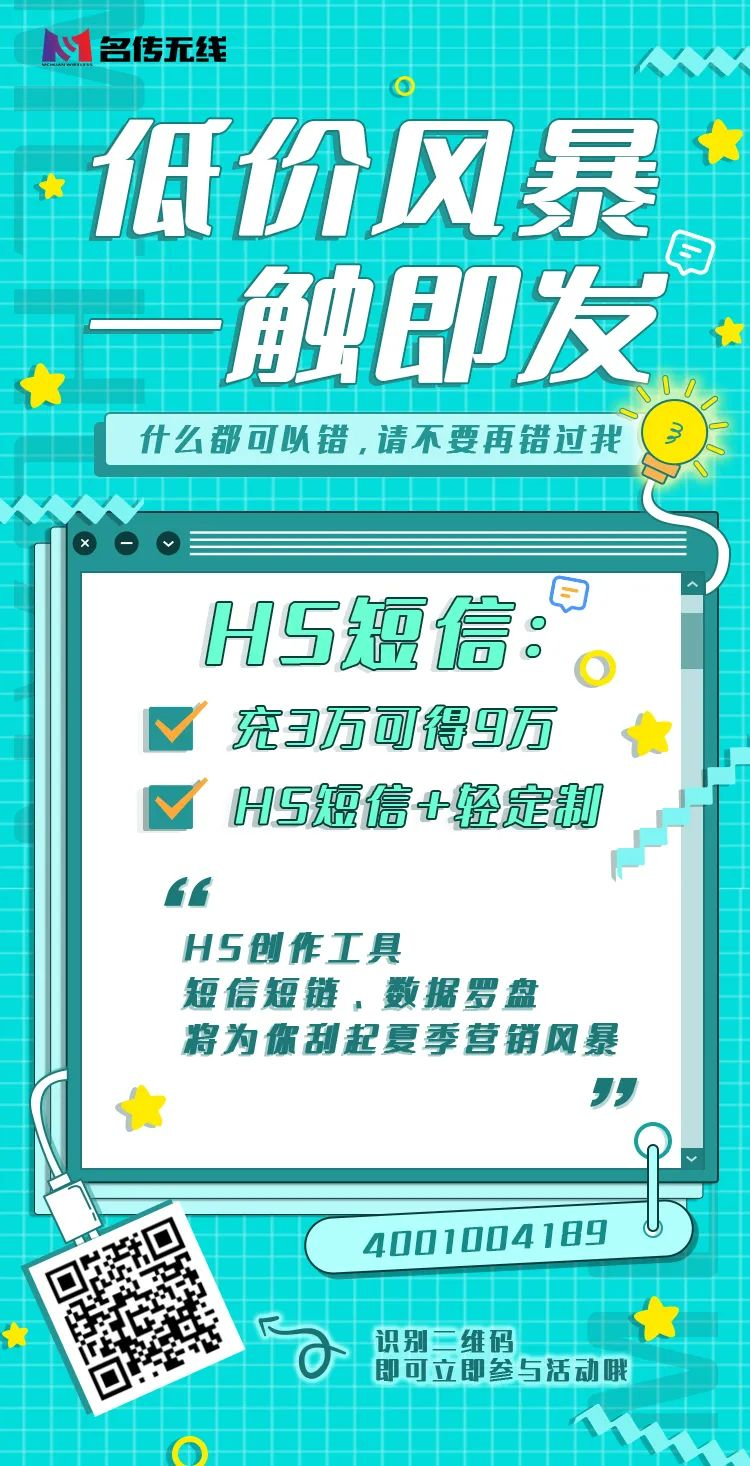 如果你觉得以上操作太常规,想来一些新颖的玩法?你可以尝试一下 名传无线的H5短信和新推出的视频短信。