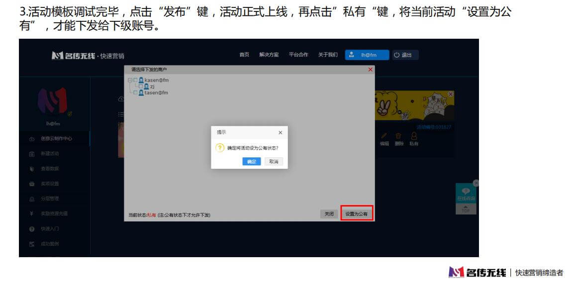 体验入口:活动编辑完毕,点击“保存”→ 选择“发布”