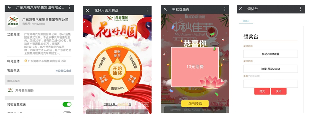 案例1:广东鸿粤汽车集团×快速营销平台:中秋转盘抽奖,活跃公众号粉丝!
