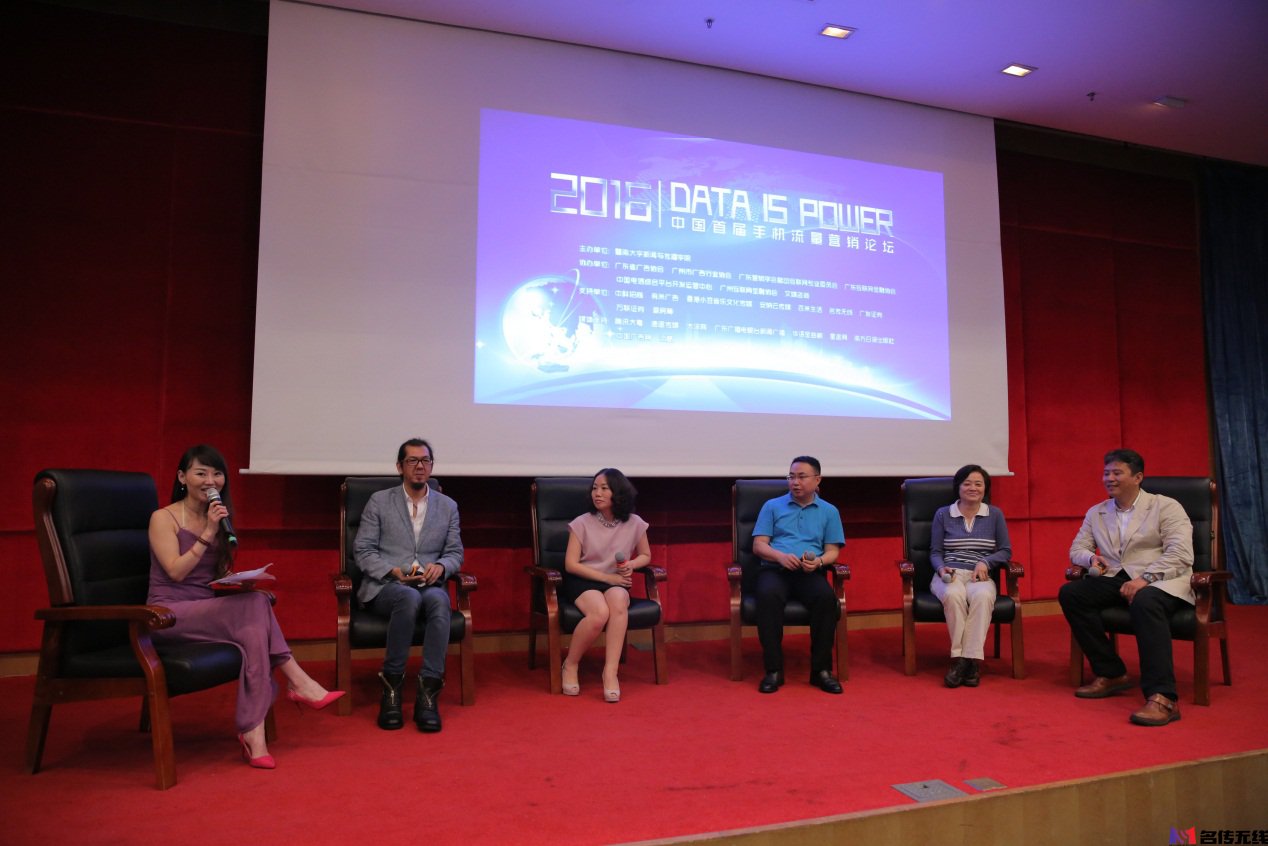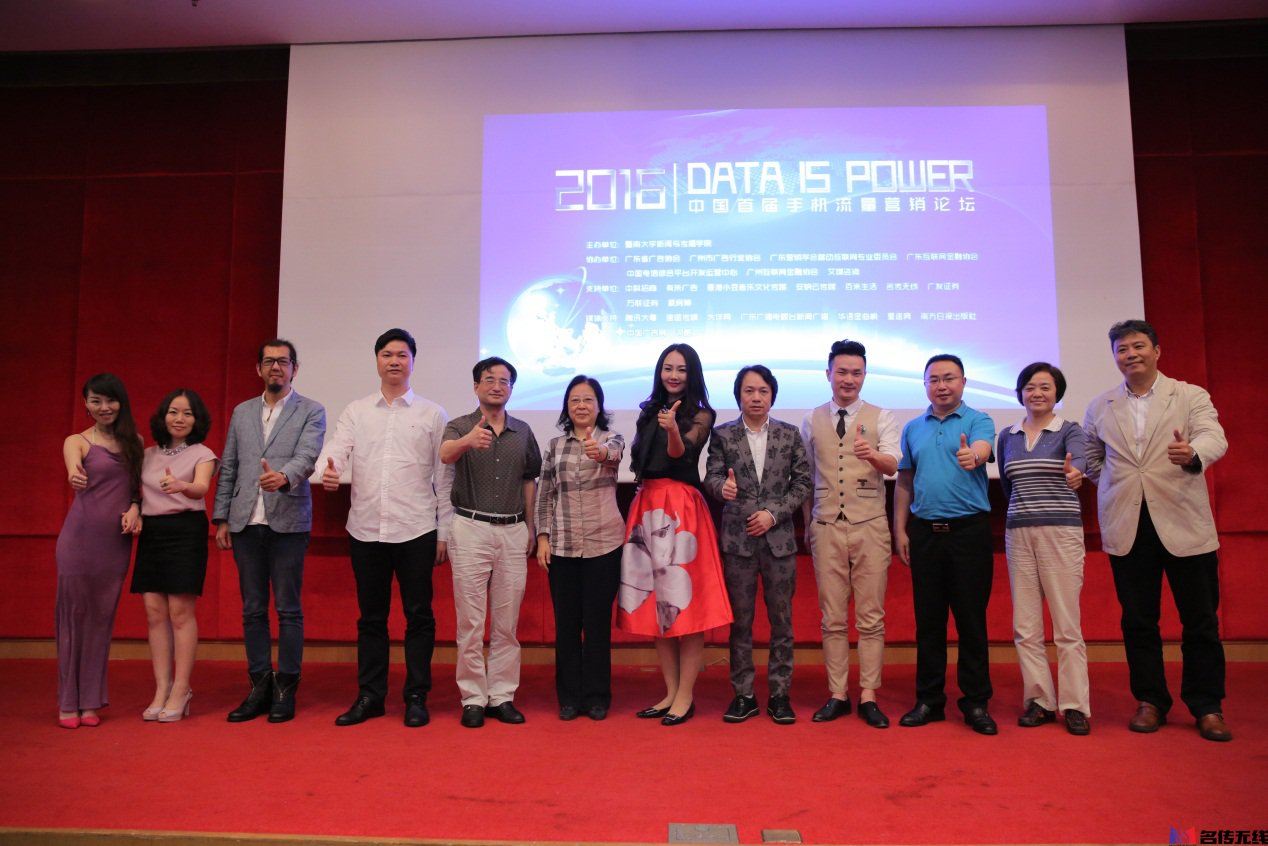 5月20日,由暨南大学新闻与传播学院主办的2016年“中国首届手机流量营销论坛”在暨南大学隆重开幕。暨南大学广告学博士生导师杨先顺教授,广东省广告行业协会会长庞玉娟,中国电信综合平台开发运营中心副总经理王刚,中国联通宽带在线流量经营中心总经理周华,卓望公司互联网事业部渠道增值业务部总监陈隽,广东省广告协会常务副会长、名传无线CEO陈志波,有米广告、中国工商银行、中科招商等行业企业知名人士都齐聚一堂,围绕着“Data is power”展开了一场精彩的行业大讨论,而中国第一部系统阐述手机流量营销的专著《手机流量营销》也在会场正式首发,新书观念得到了在场数百名嘉宾的高度认可与肯定,赢得在场的观众阵阵掌声。