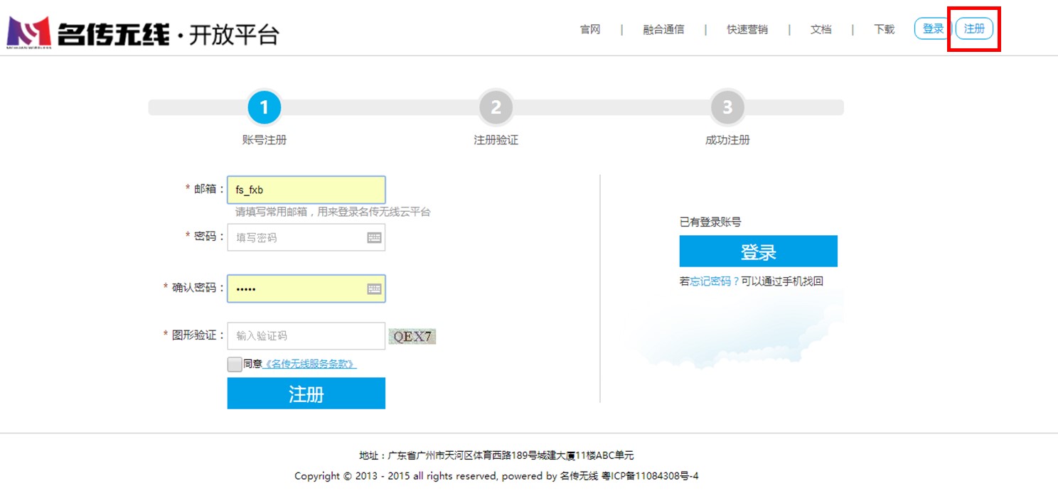 Step1:网页登录平台网址 http://yun.mchuan.com/