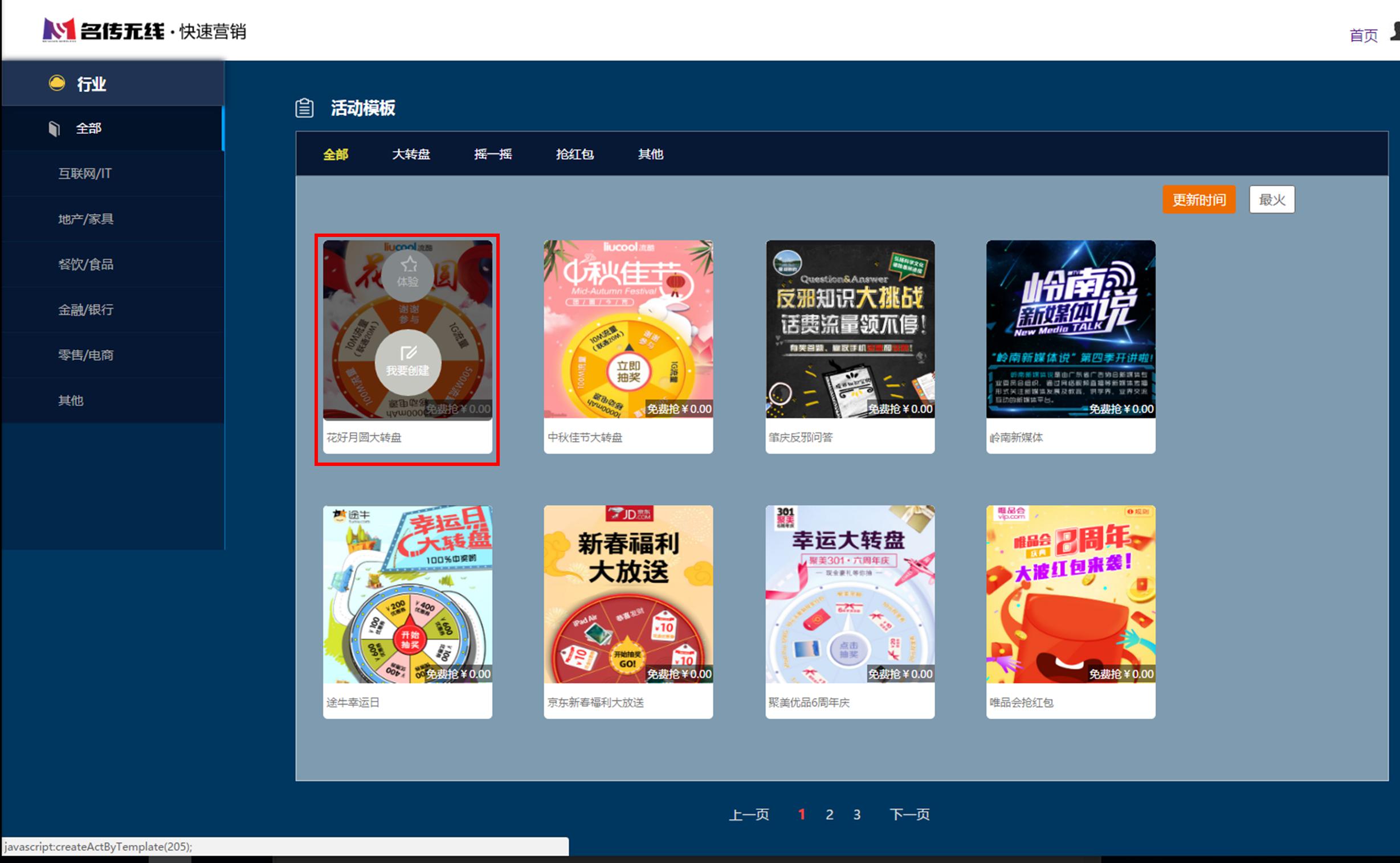 第一步 登录平台,选择活动模板。