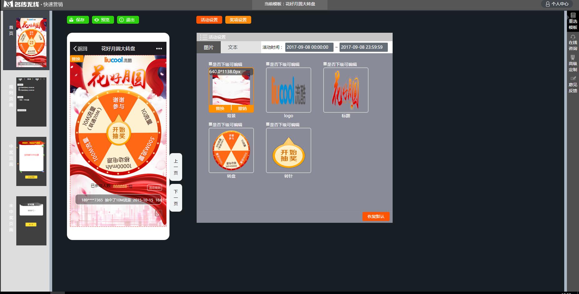 没赶上中秋这波福利,还不赶紧来体验更多专属模板和免费流量!现在注册/登录名传无线•快速营销平台,简单三步,新鲜的主题活动即可出炉!