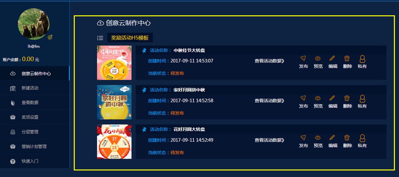 想必一直关注我们的伙伴一定不会陌生这个活动,9月我们就推出了中秋专属模板+免费流量体验活动,一经推出就获得许多客户的关注,更有客户已经用上我们的活动模板,在长假期间,妥妥的刷足了存在感!