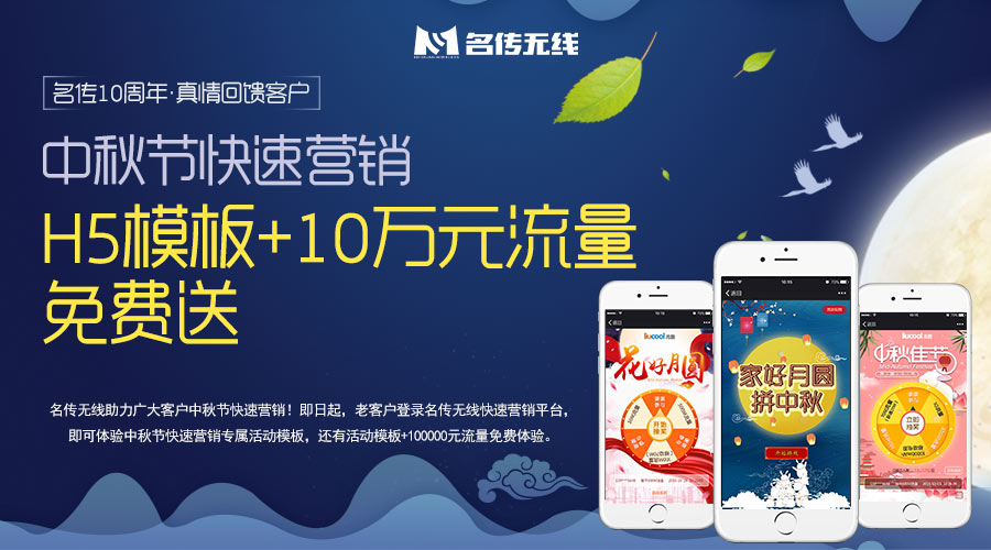 名传10周年.真情回馈老客户中秋佳节豪掷10万元流量+营销H5模板免费助力众位老客户轻松“搞定”节日营销为营销送上强力“助攻”