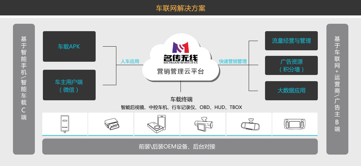名传无线开放平台,通过快速营销SaaS,提供设备全生命周期管理以及广告主资源接入,根据行业细分需求提供数据管理、应用生成、流量运营及营销变现等服务,打造具有竞争力和前瞻性的物联网服务方案。